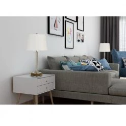 14 in. H Integrated LED Brushed Steel Metal and Fabric Pendant with Off White Shade by CAL Lighting