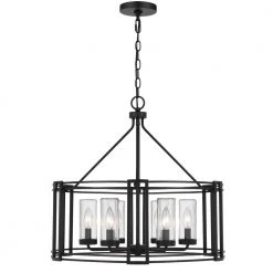 Luton Cage 6-Light Iron Metal Chandelier with Clear Cylinder Glass Shades by CAL Lighting