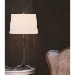 Camargo 28 in. Antique Brass Metal and Glass Table Lamp with Fabric Shade by CAL Lighting