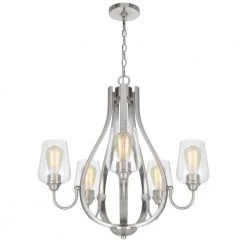 Newport Metal 5-Light Brushed Steel Chandelier with Clear White Glass Shades by CAL Lighting