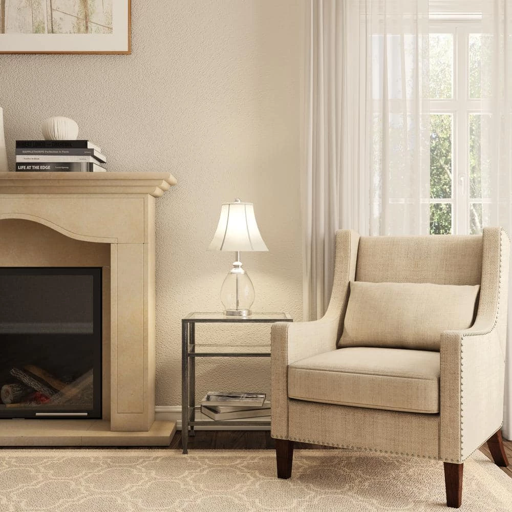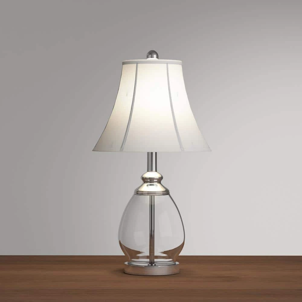 This durable fabric shade is a good addition to any decor. It features a bell shape with visible trim. Simple in design, it works well any many styles and finishes.
