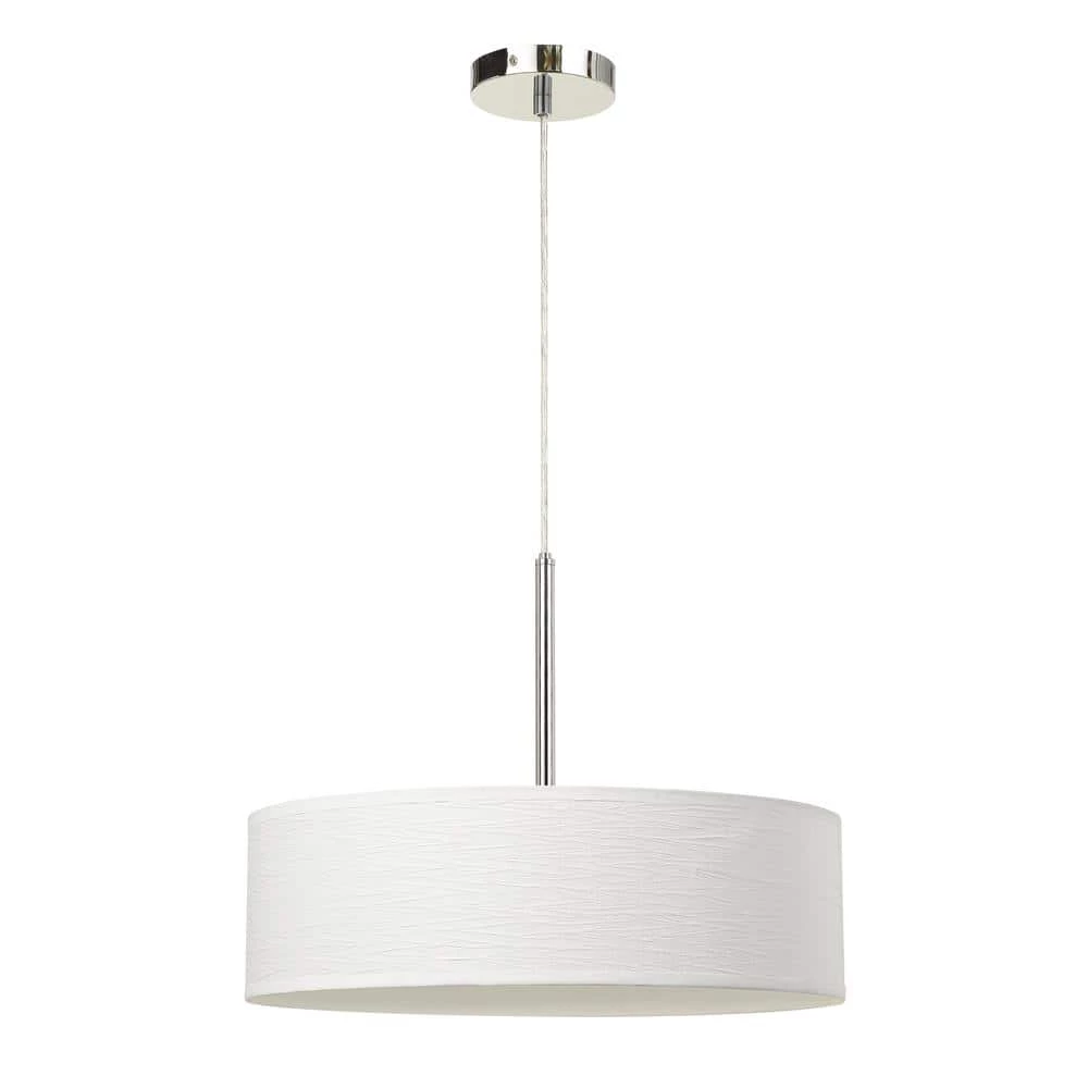Update your space with this clean and simple LED light fabric drum pendant. It ships complete with 6 ft. of cord, acrylic diffuser and silver finish canopy plate. Its simple presentation makes it is a good fit with many different styles and decor.