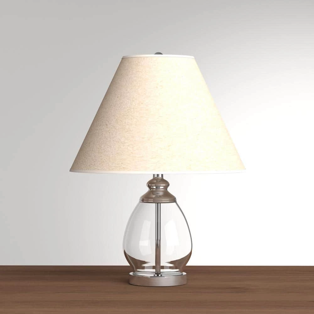 This durable fabric shade is a good addition to any decor. It features a bell shape with visible trim. Simple in design, it works well any many styles and finishes.