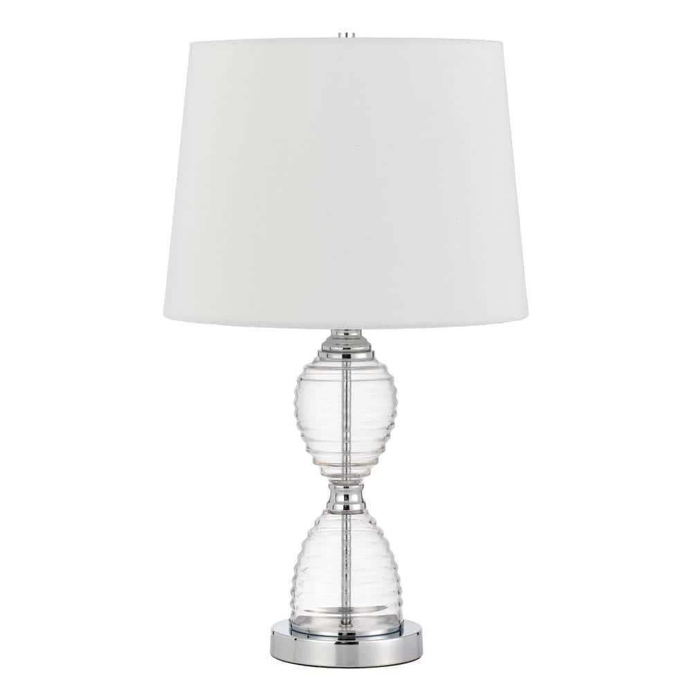 Style up Your Home with the Eden Glass Table Lamp which Includes a Hardback Fabric Shade. It has a Unique Hourglass Silhouette Body and Provides Efficient Lighting of 150-Watt. It also has a 3-Way Switch and a Weighted Base for Added Stability.