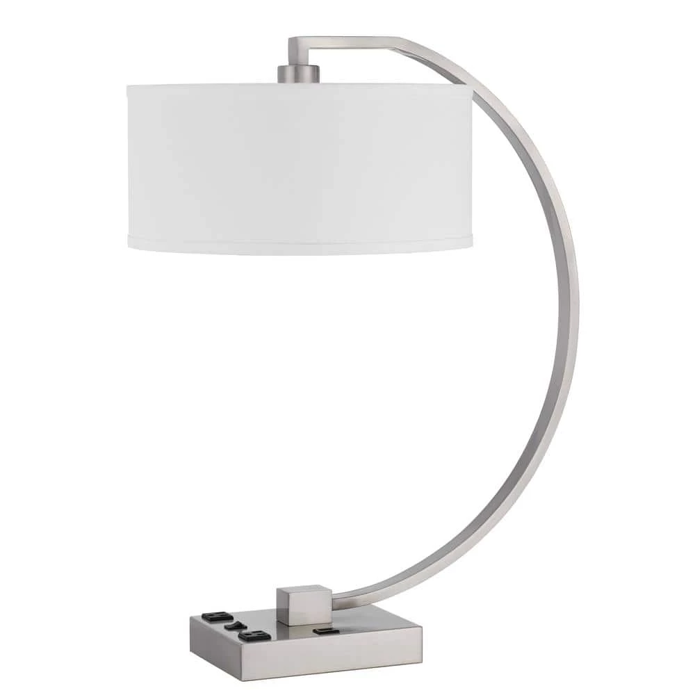 Add a Modern Touch in your Home with the Belfort Metal Desk Lamp. It has Durable Metal Construction and 2 Power Outlets along with 1 USB Charging Port. The Power Outlet is on the Base and it has an Arc Style.