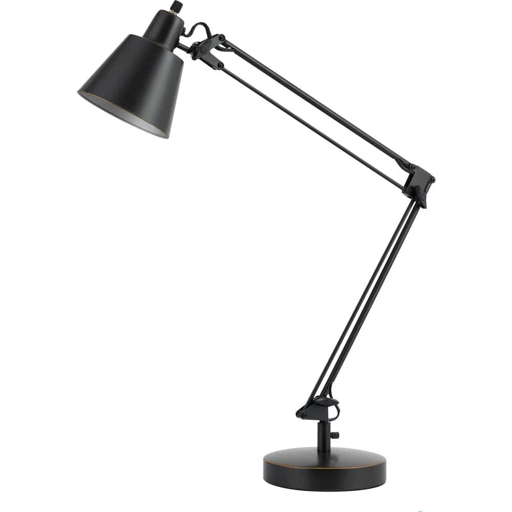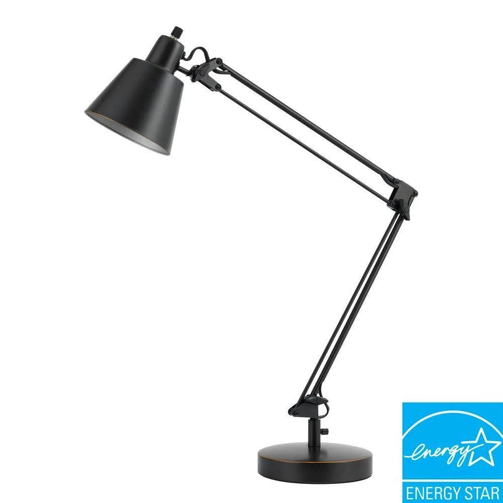 Add a touch of modern sophistication to your decor. This versatile desk lamp is the perfect addition to any table or desk area in need of light. It features a sleek adjustable arm and neck set upon a solid round base. It is finished in a dark bronze metal allowing it to fit perfectly with many decor styles.