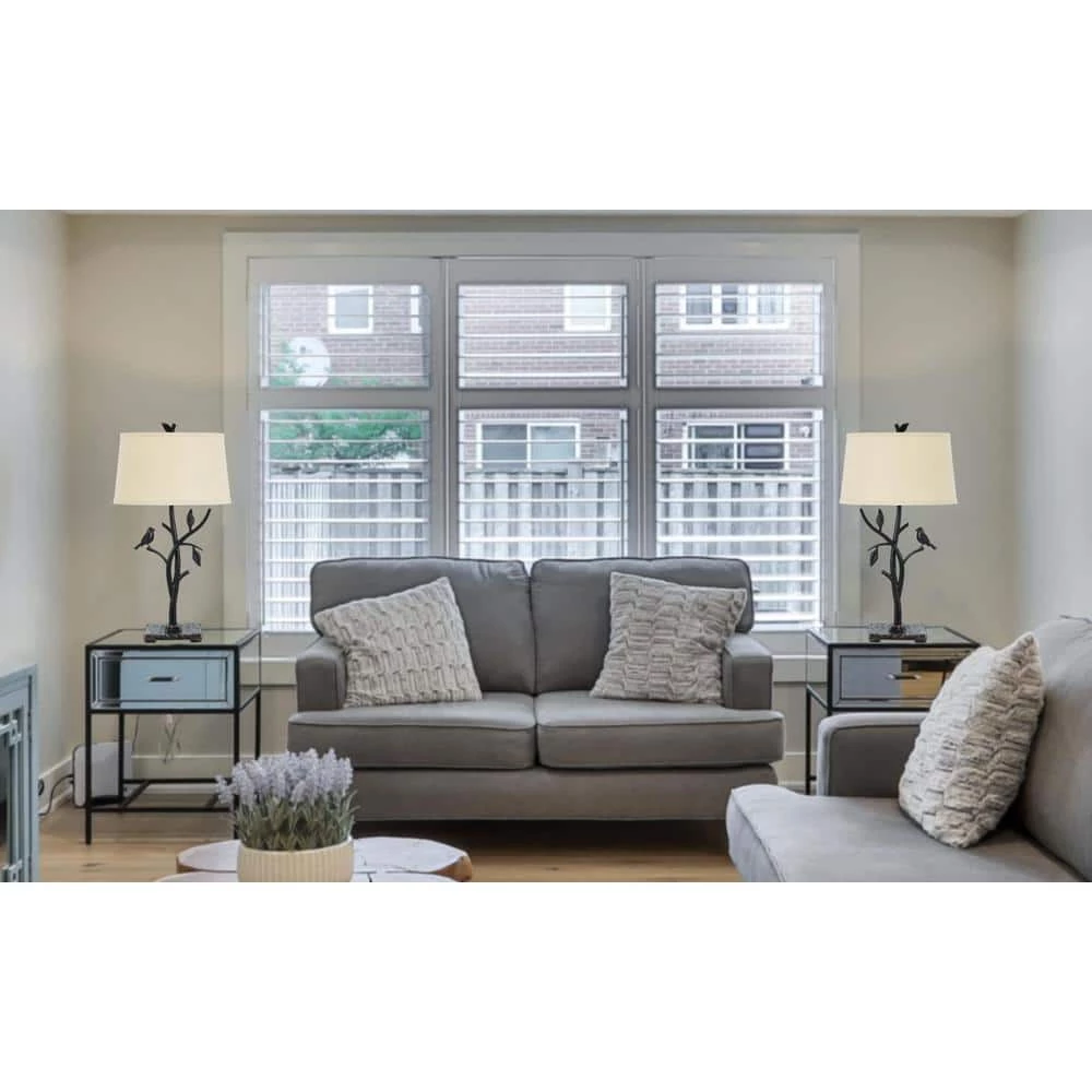 Update Your Office/Living Room with A 29 in. H Medora Iron Table Lamp. It Has a Forged Iron Tree and Bird Design and It Is Constructed with Durable Iron. It Includes a Spider Type Shade, and It Has a Hammered Base.