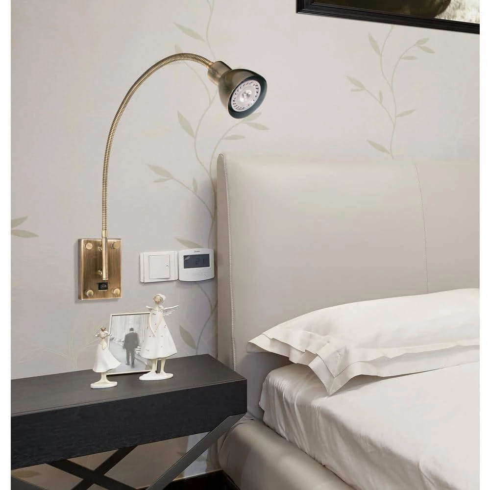 Illuminate your space with this functional reading wall lamp. It features a flexible gooseneck arm which can be adjusted for an optimal control of light. This wall lamp would make a great addition near a bed area or in a workspace which requires light to be adjusted.