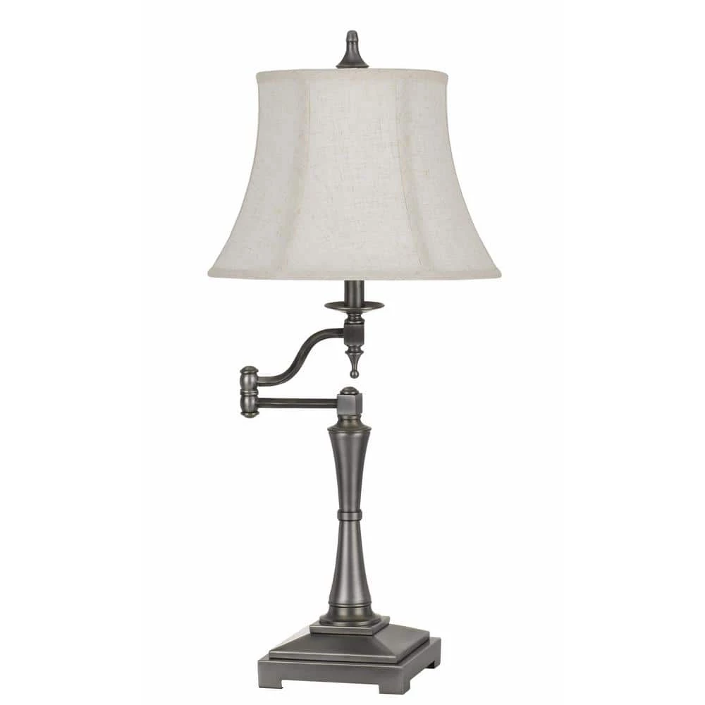 Upgrade your space with this beautiful table lamps. Its traditional yet modern look makes it perfect for any room in your home. It features a functional swing arm and a beautiful off- white fabric shade.