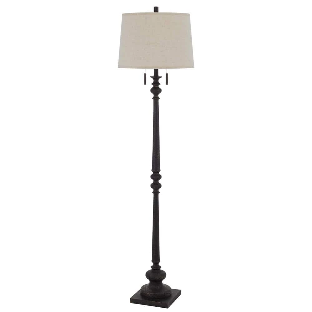 Add a rustic touch to your space with this rustic iron resin floor lamp. It features a matte hammered finish on a slim pole style body. It has a pull chain on/off design and round hardback fabric shade completes the look.