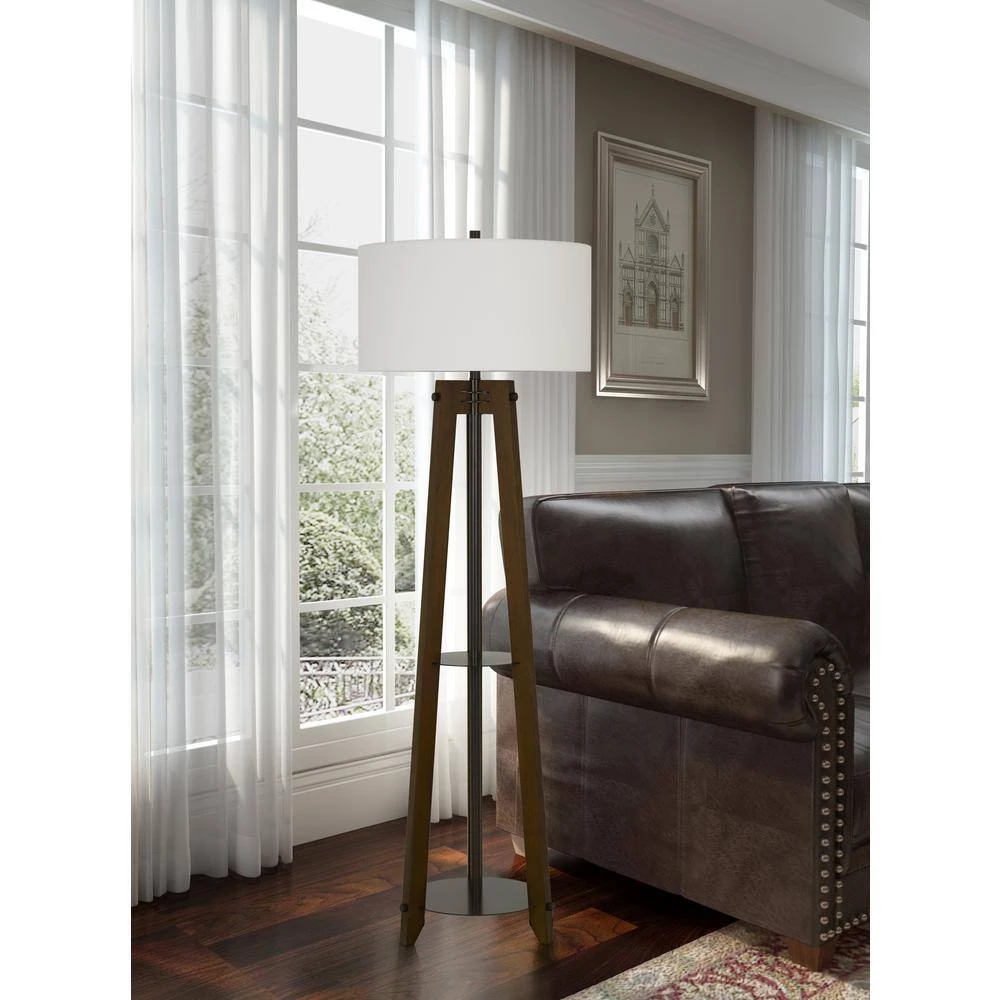 The Bilzen Ash Wood Floor Lamp has a Unique Style that Will Present a Stunning Lifestyle Design in Your Home. It is Beautifully Constructed with Durable Metal/Wood, and it has a Tripod Style. It has an Impressive Walnut Finish Color and it Includes a Hardback Fabric Drum Shade.
