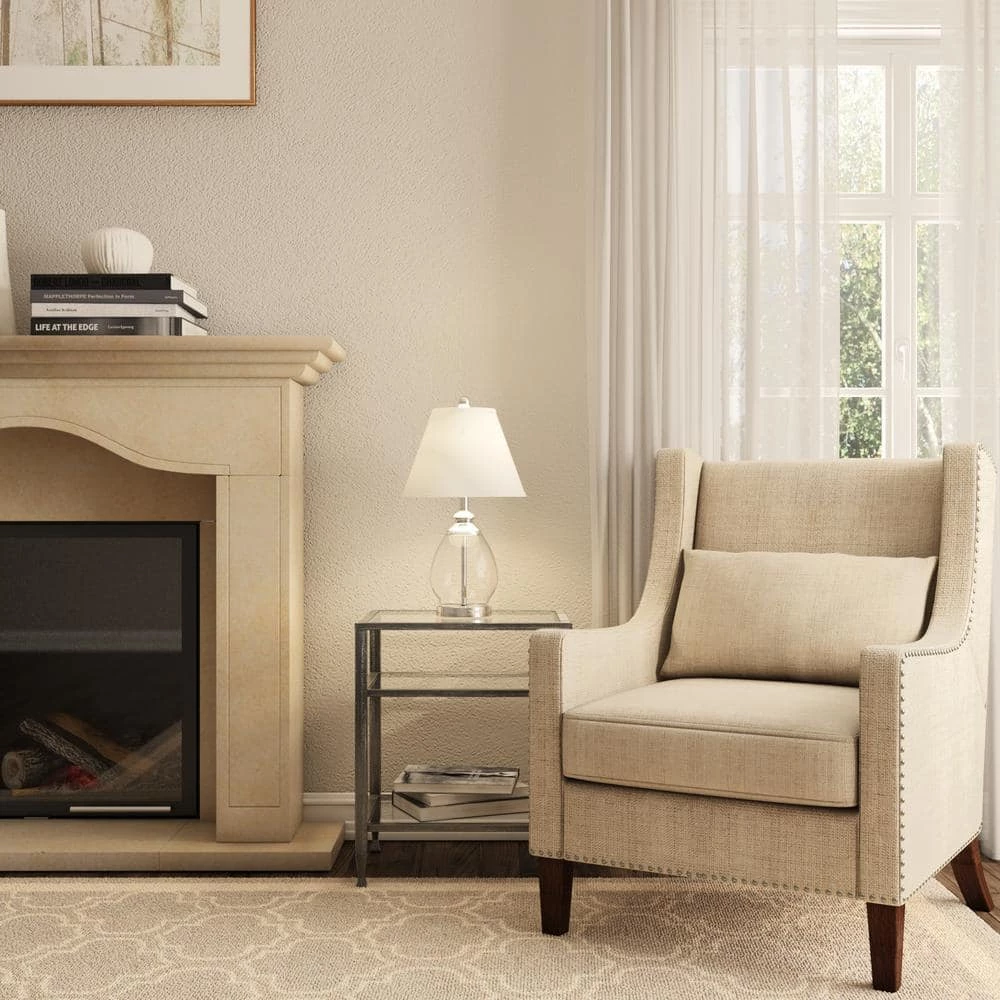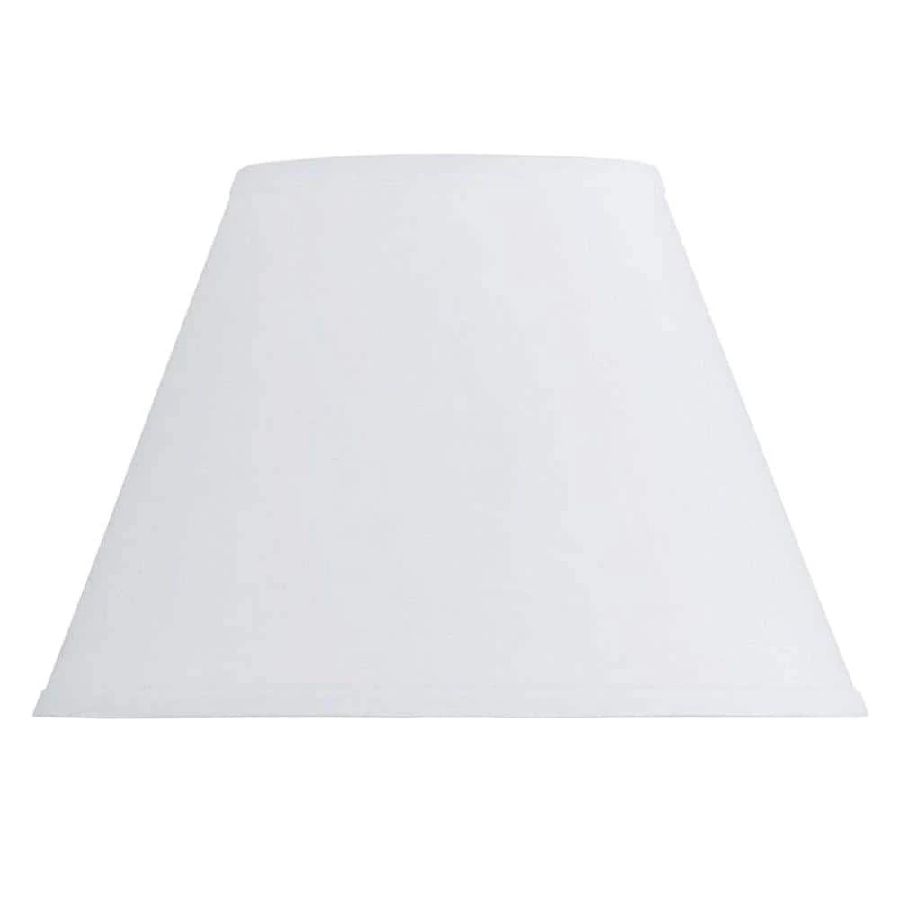 This durable fabric shade is a good addition to any decor. It features a round drum shape with visible trim. Simple in design, it works well any many styles and finishes.
