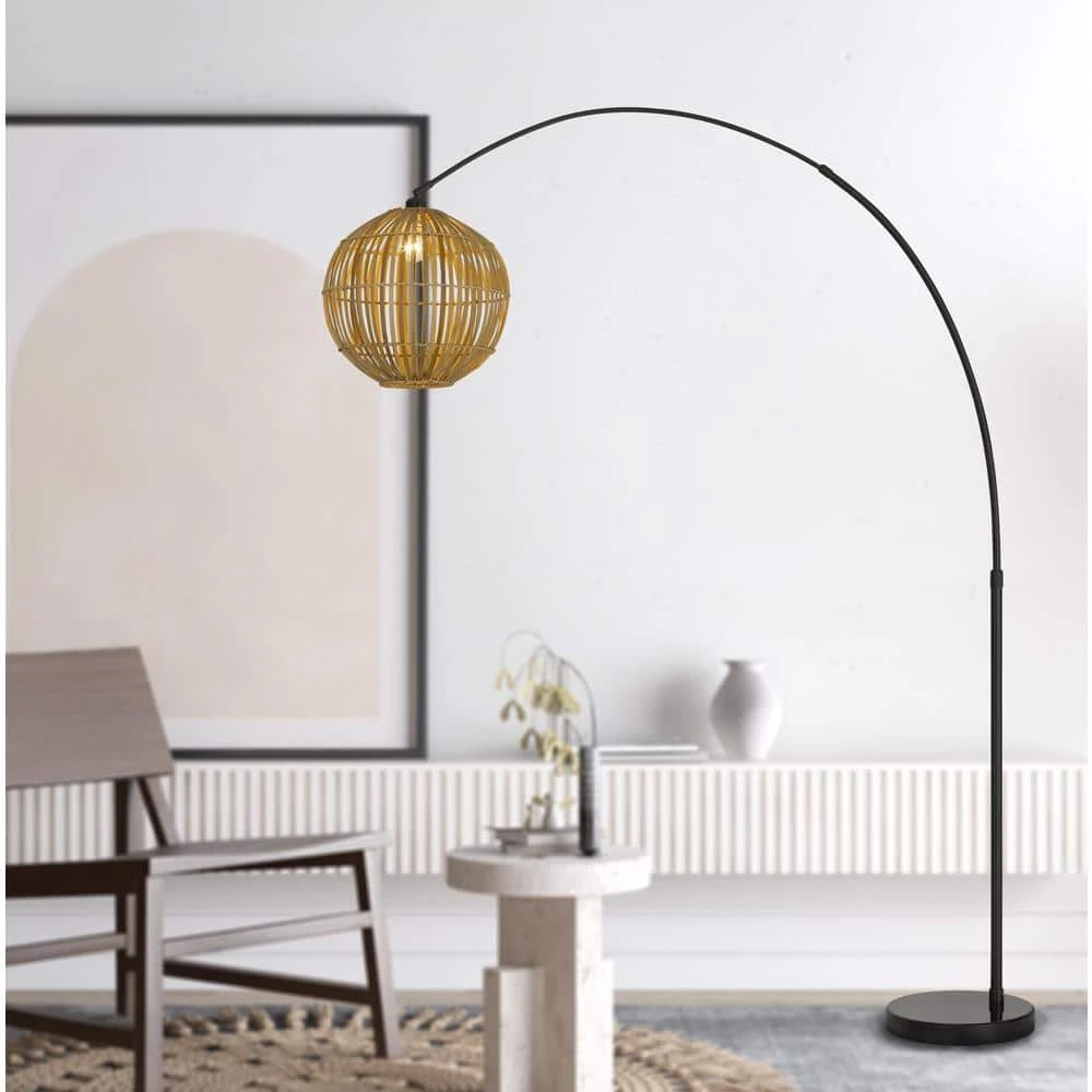 Style up your Room area with the Dark Bronze Lakeside Metal Floor Lamp. It has a Unique Black Base Color and an on/Off Foot Switch. It has an Adjustable Height and a Hand-Crafted Round Bamboo Shade.