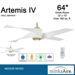 Our next generation of Artemis by Minka Aire continues the tradition of curves and curls lending the feel of kinetic sculpture to any contemporary setting with the Artemis IV. An integrated 15-Watt LED light provides energy efficient illumination. LED lamp is fully dimmable, and the full function remote control includes 6 forward/reverse fan speeds. This 4-blade gem is offered in new finish selections, providing a uniqueness all its own. Ultra-modern fan design that effectively cools and beautifies any surrounding space.