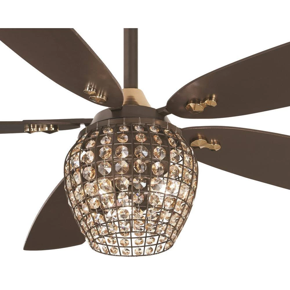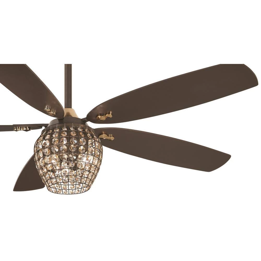 The Bling LED fan by Minka Aire combines a sleek contemporary finishes and hardware with a relaxed lamp shade bedazzled with crystals. The integrated LED light is equipped with three 4 watt LED bulbs. The ample wood blades, attached with gem-like faceted blade arms, provide significant air movement for any environment.