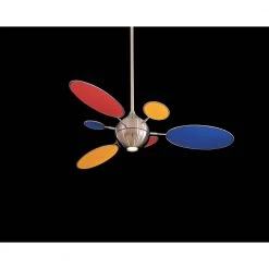 An extremely unique and functionally ceiling fan, the Cirque by MINKA-AIRE features 3 round and 3 oval blades which create 2 different sweeps which produce a good amount of air movement. Designed with 2 different blade sweeps consisting of a 25 in. inner and a 54 in. outer. Comes with 3 different optional blade colors: silver, brown, and red-yellow-blue suited for your various decor needs. A single 6-Watt LED light source which is included, integrates an energy-efficient light. Includes a 3-speed forward/reverse wall control with on/off full range light dimmer. Cirque, Winner of the 2003 Chicago Athenaeum: Museum of Architecture and Design’s Good Design Award. Cirque by MINKA-AIRE, unique, impressive, modern, a conversation-piece for-years to come.