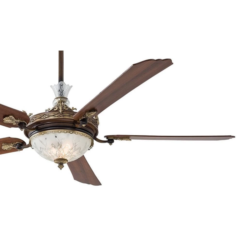 Cristafano by MINKA-AIRE is a neo-classical inspiration, incorporating an up light with an integrated LED downlight. Equipped with both up and down LED lights for full optimum illumination. Designed with a Belcaro Walnut finish and comes with 5 Dark Walnut blades with a 68 in. span and a 14° pitch, it generates up to a maximum 7,885 CFM optimal air flow. Optional Spectra Crystal Decorative Set available for additional cost. Includes a 3-speed forward/reverse wall control with on/off full range light dimmer. Whether traditional, classical, or contemporary, this drop-down mounted Cristafano is ready to make your room a more stylish and comfortable living space. The classical Cristafano, designed by MINKA-AIRE is truly a work of art and inspiration.