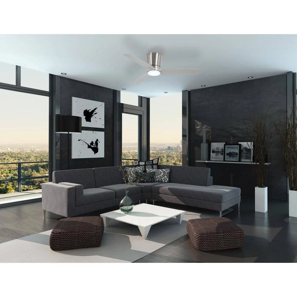 PURE modern styling is embodied by the Minka-Aire PURE ceiling fan collection. Built with a 48 in. blade sweep and a 12° blade pitch, the PURE will work beautifully in a large sized room. The 16W LED light source integrates energy-efficient light without compromising design. This delightfully lightweight flush mount ceiling fan is presented in 3 different finishes. Includes a 4-speed fan wall control with a full range light dimmer.