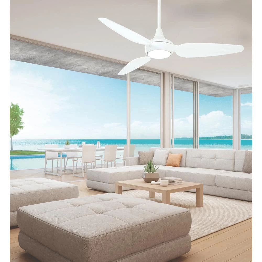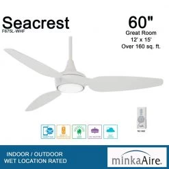 Redefining clean coastal living. The Seacrest exhibits a transitional appeal that compliments outdoor patios and sunrooms. A 60 in. blade sweep with subtle ribbing across the blades provides on trend elements with today’s decor. Equipped with an integrated 20-Watt LED light for added light output and a wet rated energy efficient DC Motor perfect for indoor and outdoor use. Seacrest is part of the impressive MINKA-AIRE’s smart Fan collection, featuring east to use smart home integration with the IOS and Android Bond Home App. Power to control your ceiling fan away from home with swipe of the finger using MINKA-AIRE Technology. With MINKA-AIRE Wi-Fi technology built-into the ceiling fan, you will be able to access all your standard fan features such as the speed, winter/summer airflow, and light dimming along with new bonus features. Set your new MINKA-AIRE Smart Fan on a timer, use the gentle breeze option, enable a home away feature or create a routine that sets the fan light to turn on at a certain interval to simulate someone being at home by using your Amazon Echo or Google Home assistant. Seacrest, sleek, smart, and stylistic, designed by MINKA-AIRE.