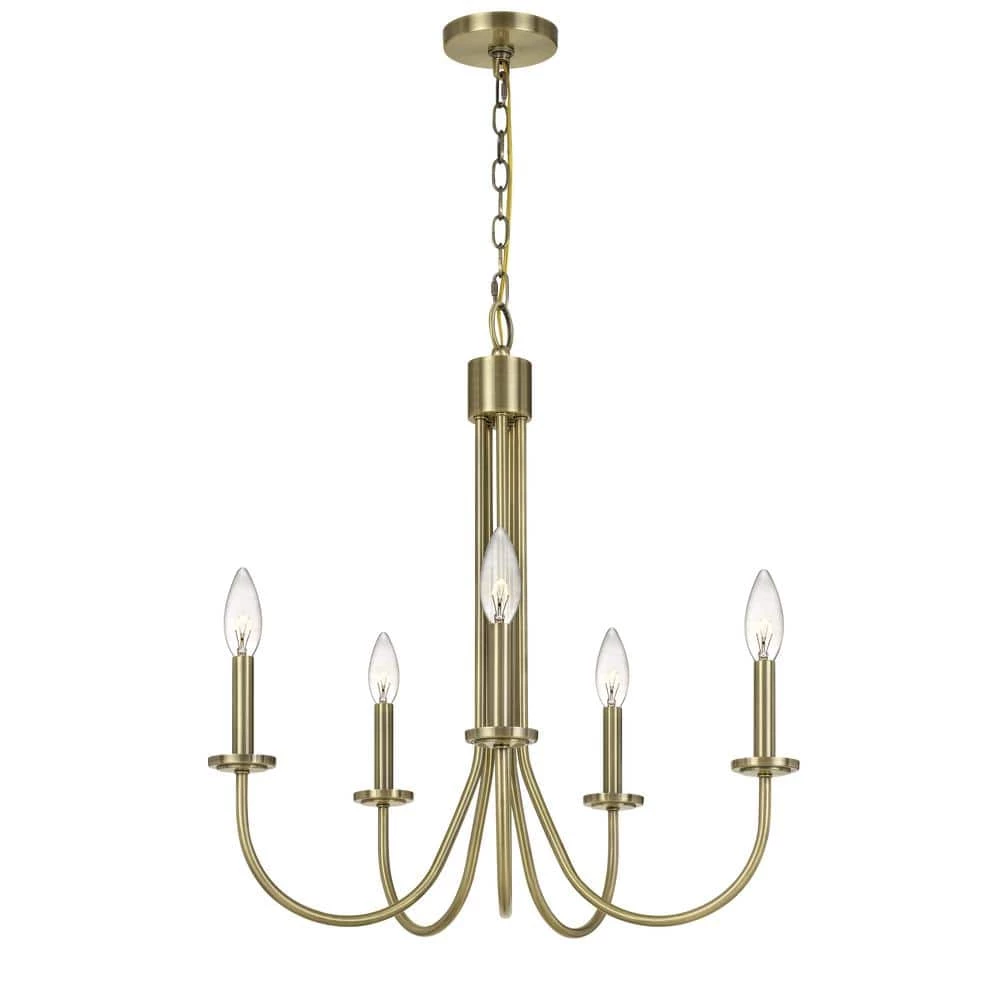 Update your decor with this elegant antique brass chandelier fixture. It features 5 candelabra type up lights crowned upon curved metal arms. With its clean lines and smooth finish, this fixture is a good fit with many different styles and decor.